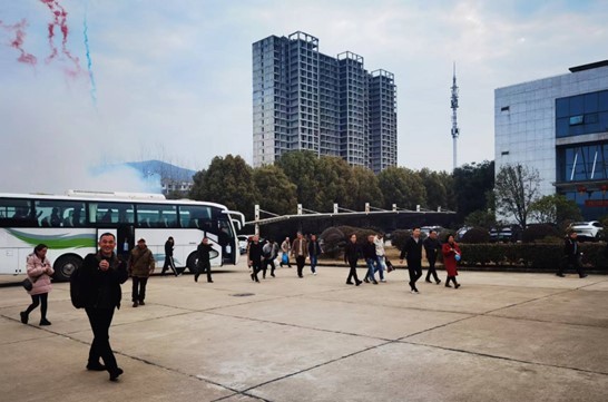 帶着對新年的希望與祝福,年初九第一天上班,公司全體領導班子成員早早提前在公司廠門口給全體職工拜年。