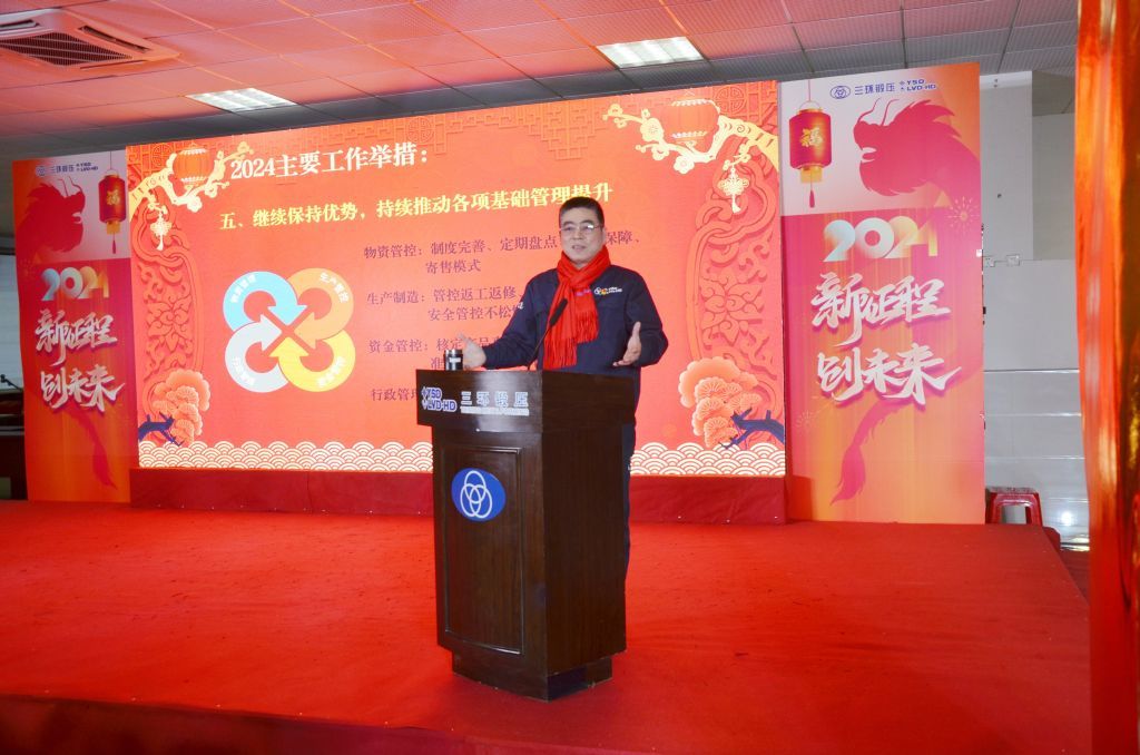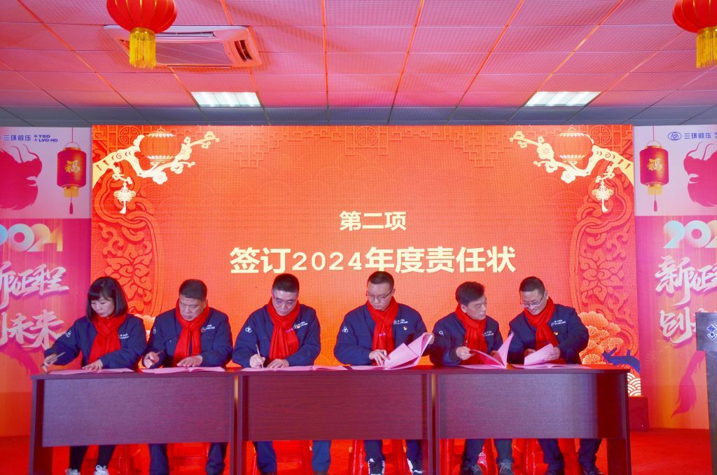 2月3日,湖北三環鍛壓設備有限公司召開2024年黨建暨經濟工作會議。公司領導班子成員、全體中層幹部、年度受表彰職工,全體職工代表參加大會。